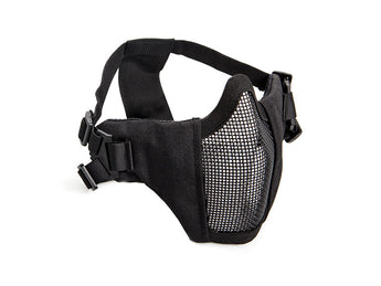 Superior comfort and protection. This combo nylon/metal grid mask covers the lower face, features fully adjustable upper, and lower elastic straps as well as rear retention webbing insert, which keeps the straps in place on the head. The soft padded nylon sides of the mask follows the contours of the face and allows easy shouldering of any rifle, so the mask does not get in the way of a clear sight picture. The metal mesh can be adjusted for a perfect fit. Must be used with safety goggles.