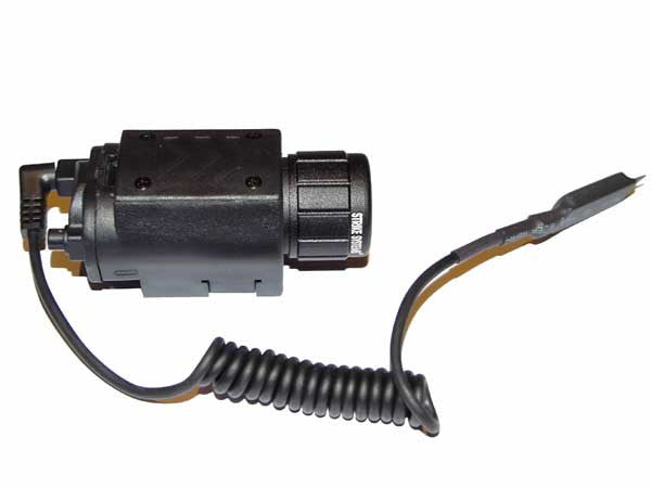 This compact light is shockproof and due to the o-ring seals, waterproof. The light is switched on either with a button switch placed handy on the rear or with the accompanying pressure switch. The remote pressure switch can easily be detached if not needed.