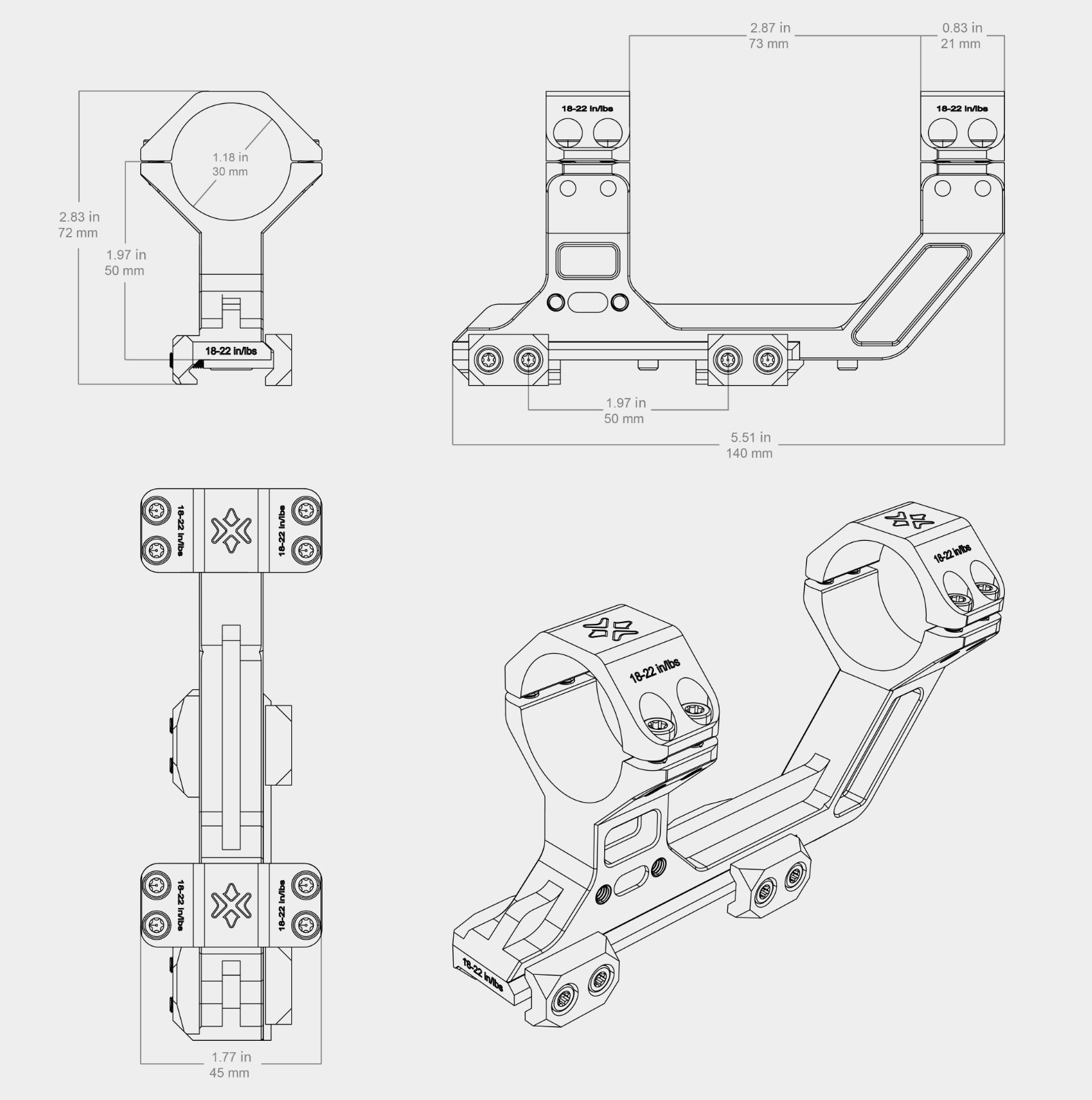 Grazie al suo design con offset cantilever, sposta l'ottica in avanti per un comfort visivo maggiore. Realizzato in alluminio 6061-T6 lavorato CNC, questo supporto è leggero ma estremamente resistente. Il sistema a 4 viti su ogni anello garantisce un montaggio sicuro anche sotto forti rinculi.